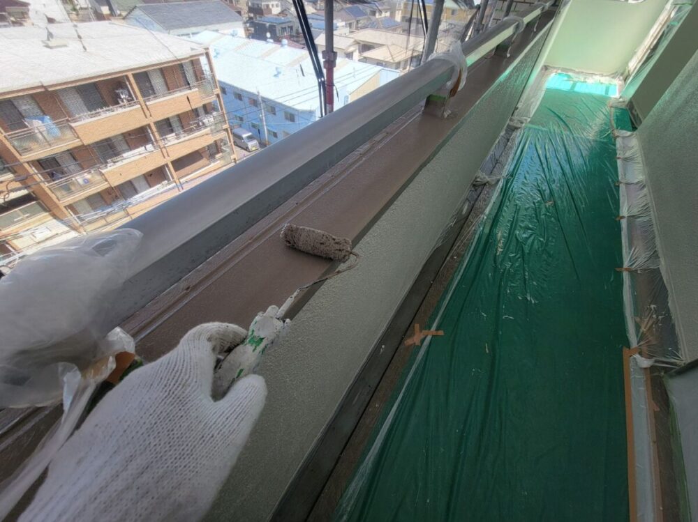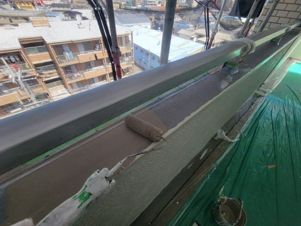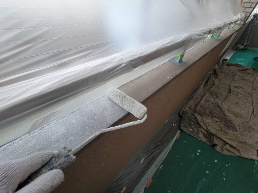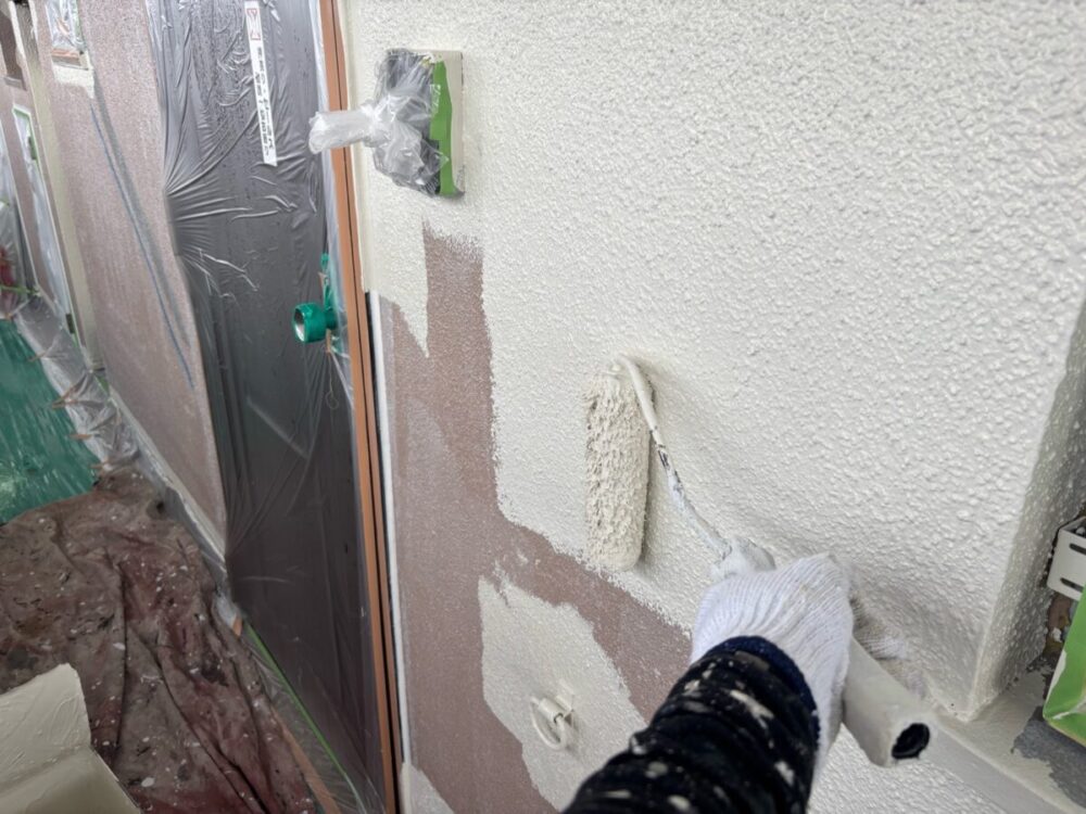 外壁材と塗料との密着性を高める為下塗り材を塗布していきます。