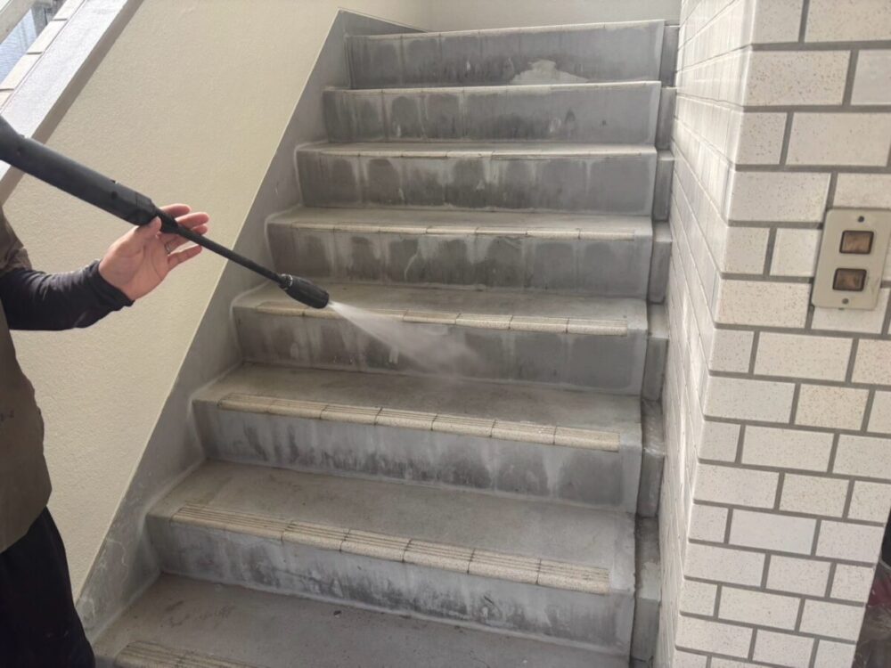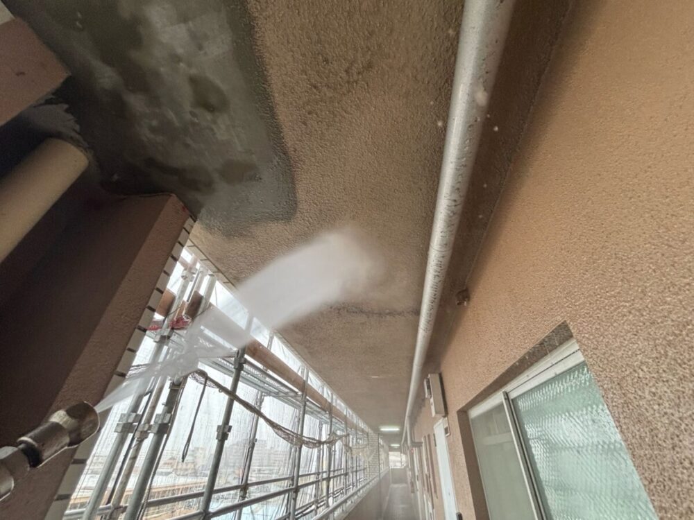 外壁に付着している砂塵、汚れ、苔、藻、カビなどを洗い流し綺麗にする作業になります。